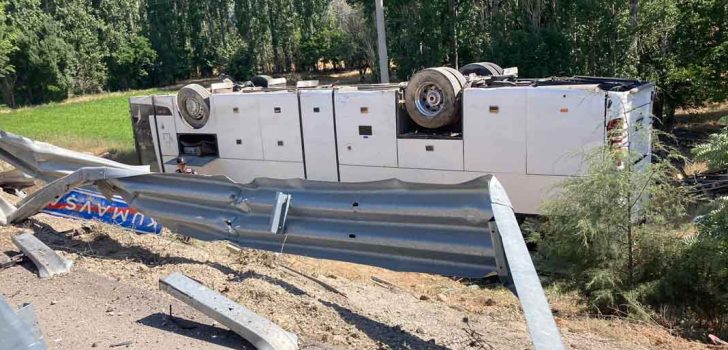 ACIPAYAM’DA TURİST OTOBÜSÜ DEVRİLDİ