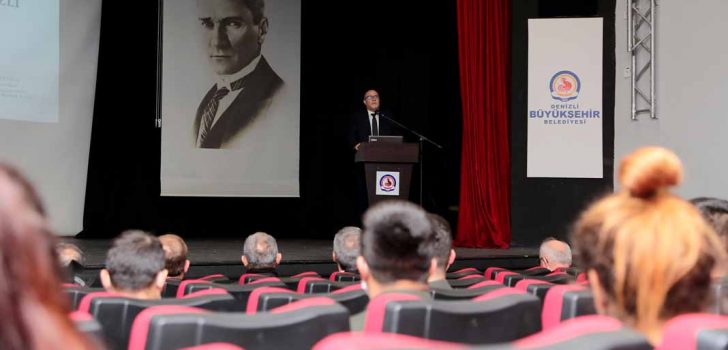Gazi Mustafa Kemal Atatürk’ün Denizli’ye gelişinin 91. yıldönümü etkinlikleri kapsamında “Atatürk’ün Denizli’ye Ziyaretleri” adlı konferans yapıldı. Türkiye Cumhuriyeti’nin kurucusu Gazi Mustafa Kemal Atatürk’ün Denizli’ye gelişinin 91. yıldönümü dolayısıyla Pamukkale Üniversitesi (PAÜ) Öğretim Üyesi Prof. Dr. Ercan Haytoğlu’nun, “Atatürk’ün Denizli’ye Ziyaretleri” adlı konferansı gerçekleştirildi. Denizli Büyükşehir Belediyesi Çatalçeşme Oda Tiyatrosu’nda yapılan programa Denizli Büyükşehir Belediye Meclis Başkanvekili Ali Değirmenci, Kültür ve Sosyal İşler Dairesi Başkanı Hüdaverdi Otaklı, Kültür ve Turizm İl Müdürü Turhan Veli Akyol, siyasi parti temsilcileri, sivil toplum kuruluşu temsilcileri ve davetliler katıldı. Prof. Dr. Ercan Haytoğlu, Türkiye Cumhuriyeti’nin kurucusu Gazi Mustafa Kemal Atatürk’ün Denizli ziyaretinin, kent tarihi açısından çok önemli bir yere sahip olduğunu ve hak ettiği şekilde anılmaya çalışıldığını söyledi. Prof. Dr. Haytoğlu, Mustafa Kemal Atatürk’ün Milli Mücadele’nin komutanı olduğu ve Büyük Zafer’in kazanılmasının mimarı olduğunu belirtti. Haytoğlu, “Türkiye Cumhuriyeti’nin kurucusu Mustafa Kemal Atatürk aynı zamanda Türkiye Cumhuriyeti’ni bir çağdan alıp, bir çağa götürmeye yönelik inkılâplarını gerçekleştiren büyük bir önder ve liderdir. Dönemi içerisinde halkının yaşadığı yerleri ziyaret etmek, yerinde görmek istemiştir” dedi. Prof. Dr. Haytoğlu konferansta Atatürk’ün Denizli ziyaretindeki bilgileri detayları ile paylaştı. Programın sonunda Büyükşehir Belediye Meclis Başkanvekili Ali Değirmenci, Prof. Dr. Haytoğlu’na günün anısına hediye takdim etti.