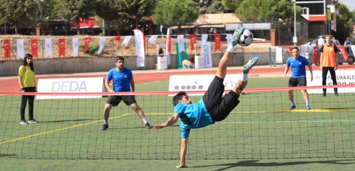 Ayak Tenisi Türkiye Şampiyonası’nın açılışı renkli görüntülere sahne oldu. Denizlispor’un efsane futbolcuları Ali Yalçın, Veli Acar, Levent Kartop, Yaşar Işık ve Bülent Ertuğrul ile törene katılan protokol üyeleri gösteri maçında hünerlerini sergiledi. Efsane futbolcular yeteneklerini sergilerken, izleyenlere adeta resital sunuldu. Yeşil-siyahlı takımın efsane futbolcuları Ayak Tenisi Türkiye Şampiyonası Finalleri’ne Pamukkale Belediyesinin ev sahipliği yapmasının önemine değinerek, bu konuda Pamukkale Belediye Başkanı Avni Örki ve ekibine teşekkür ettiler. Ayak Tenisi Türkiye Şampiyonası Finalleri’nde heyecan Kınıklı Spor Tesisleri’nde 2 gün boyunca sürecek.