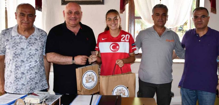 Buldan Belediye Başkanı Mustafa Şevik, yeşil sahalarda gösterdiği başarısı ile U-17 Kadın Milli Futbol Takımı’na seçilen Sıla Eldireklioğlu’na krampon gibi çeşitli antrenman malzemeleri hediye ederek, tebrik etti. Başkan Şevik, “Ben inanıyorum ki Sıla, uluslararası platformlarda da Buldan’ımızı başarıyla temsil edecek. Kendisine başarılar dilerim” dedi.  Horozkentspor Kadın Futbol takımında forma giyen Buldanlı Sıla Eldireklioğlu, U-17 Futbol Milli Takımı’na seçilerek Buldan’ı gururlandırdı. Sıla Eldireklioğlu ile babası Veli Eldireklioğlu Belediye Başkanı Mustafa Şevik’i ziyaret etti. Milli futbolcuyu makamında ağırlayan Başkan Şevik, U-17 Milli takım formasıyla Buldan’ı temsil edecek olan Sıla’ya, krampon gibi çeşitli antrenman giysileri hediye ederek, tebrik etti. Belediye olarak her zaman sporcunun yanında olduklarını söyleyen Başkan Şevik“Sporcularımız, kazandıkları başarılarıyla bizleri gururlandırmaya devam ediyor. U-17 Futbol Milli Takımı’na seçilerek Buldan’ımızı temsil edecek olan Sıla’yı tebrik ederim. Ben inanıyorum ki Sıla, başarılarıyla hem kendi adını hem de Buldan’ın adını uluslararası platformlarda başarıyla duyuracaktır. Belediye olarak yetenekli sporcularımızın arkasındayız ve imkanlarımız doğrultusunda desteklemeye devam edeceğiz” dedi. Hem Horozkentspor’da hem de U-17 Milli takımda Buldan’ı en iyi şekilde temsil edeceğini belirterek, “Öncelikli hedefim hem Horozkentspor’u hem de ay-yıldızlı milli formayı giyeceğim U-17 Futbol milli Takımını şampiyonluğa taşımak.  Sonra tabiî ki hedefim A Milli Takım formasını da giymek” dedi. Kendisini destekleyen başta ailesi olmak üzere okul öğretmenlerine, Horozkentspor hocalarına ve Belediye Başkanı Mustafa Şevik’i teşekkür etti.
