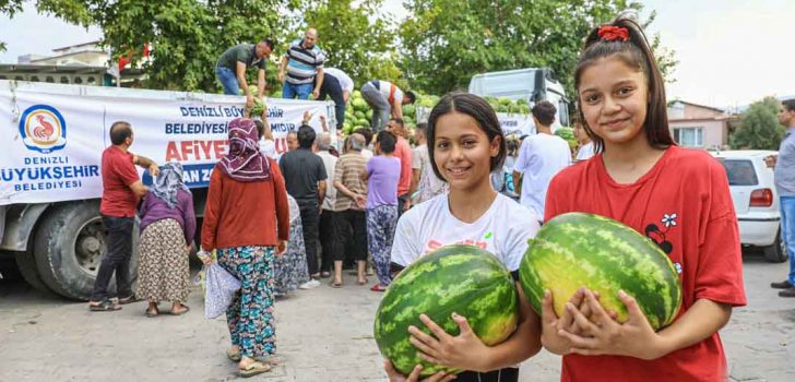 Başkan Osman Zolan’ın talimatı üzerine fazla üretimden dolayı Acıpayamlı üreticilerin elindeki karpuzlar Büyükşehir Belediyesi tarafından satın alındı. Akalan Kavun Karpuz Pazarı’ndan alınarak her gün tırlarla Denizli merkeze getirilen karpuzlar kentin farklı bölgelerinde vatandaşlara ücretsiz olarak ulaştırılmaya başlandı. Üreticiler ve vatandaşların büyük bir memnuniyet duyduğu proje ile toplamda 225 ton karpuzun Denizlililerin sofrasına geleceği kaydedildi. Acıpayam’ın Akalan Mahallesi Muhtarı Ahmet Çakmakçı, sıkıntılarını Başkan Zolan’a ilettiklerini anlatarak, “Allah razı olsun Başkanımız Osman Zolan hemen müdahalede bulundu ve sorunumuz çözüldü. Şahsım ve tüm üreticilerimiz adına teşekkür ediyorum. Büyük bir sıkıntımız giderildi” dedi. Karpuz dağıtımının yapıldığı İlbadı Mahallesi Muhtarı Mehmet İldam ise, uygulamadan dolayı vatandaşların büyük bir memnuniyet duyduğunu belirterek, “Başkanımız Osman Zolan’dan Allah razı olsun, kendisine teşekkür ediyoruz” dedi.