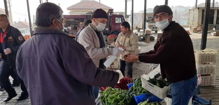 ÇAL’DA DİKİLEN MASKELERDEN STOK BİLE YAPTILAR