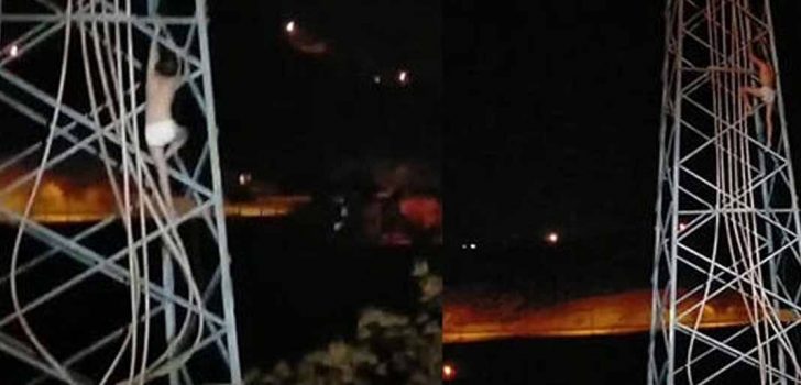 ÇIPLAK ŞEKİLDE YÜKSEK GERİLİM HATTINA TIRMANDI