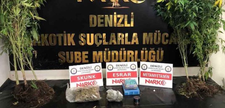 Denizli Emniyet Müdürlüğü Narkotik Masası ekipleri, il genelinde uyuşturucu madde ticareti yapan, kullanan şahısların tespiti ve yakalanmasına yönelik yürütülen çalışmalarda toplam 1.899 birim sentetik kannabinoid, 335 gram skunk, 58 gram metamfetamin, 26 gram esrar, 353 kök haşhaş bitkisi, 6 kök kenevir bitkisi, 44 gram eroin, 14 gram kokain, 241 adet sentetik ecza, 2 adet ecstasy, 1 adet captagon, 2 adet hassas terazi, 1 adet tüfek ve suçtan elde edildiği değerlendirilen (1000 TL) para ele geçirildi. “Uyuşturucu Madde Ticareti Yapmak” suçundan adli makamlara sevk edilen toplam 12 şüpheli şahıs tutuklanarak cezaevine gönderildi.
