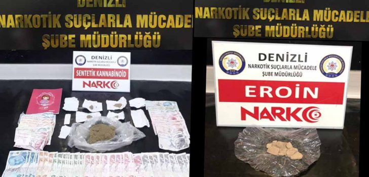 Denizli Emniyet Müdürlüğü Kaçakçılık ve Organize Suçlarla Mücadele Şubesi ekipleri, zehir tacirlerine yönelik operasyonlarını sürdürüyor. 1 kişinin ikametinde uyuşturucu bulundurduğu ve satışını yaptığı yönündeki istihbaratı değerlendiren polis baskın yaptı. Düzenlenen operasyonda 5 şüpheli şahıs yakalandı. Şahısların üzerinde ve ikametinde yapılan aramada, uyuşturucuyu yakalanmamak için banyo giderinin içine döktüğü ortaya çıktı. Elektrik süpürgesi ile çekilen 70 gram Kannabinoid Maddesi ve Uyuşturucu madde satışından elde edildiği değerlendirilen 2 bin 25 TL nakit para ele geçirildi. Olayla ilgili 5 şahıstan 1’i tutuklandı. Hafta sonu uygulanan sokağa çıkma yasağına uymayarak aracı ile trafiğe çıkarak uyuşturucu madde sattığı tespit edilen 1 şüpheli şahıs yakalandı. Şüpheli şahsın üzerinde ve aracında yapılan aramalarda aracın radyo kısmının içerisine zulalanmış, satışa hazır vaziyette muhtelif cins ve miktarlarda uyuşturucu madde ele geçirildi. Yakalanan 1 şüpheli şahıs hakkında Uyuşturucu Madde Ticareti Yapmak suçundan adli işlem yapıldı. İl genelinde uyuşturucu ticareti yapan 33 kişi yakalandı. Bunlardan 16’sı tutuklandı. Yapılan operasyon ve aramalarda; Yarım kilogram esrar maddesi, Muhtelif cins ve miktarlarda satışa hazır vaziyette uyuşturucu madde, Uyuşturucu madde satışından elde edildiği değerlendirilen 2.025 TL para, 1 adet ruhsatsız tabanca, 2 adet kurusıkı tabanca, tabancalara ait 8 adet mermi ve 1 adet hassas terazi, ele geçirildi.