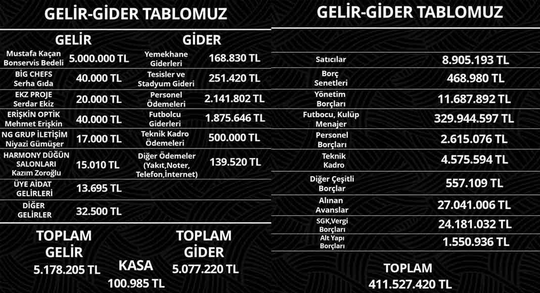 DENİZLİSPOR GELİR GİDER TABLOSUNU PAYLAŞTI