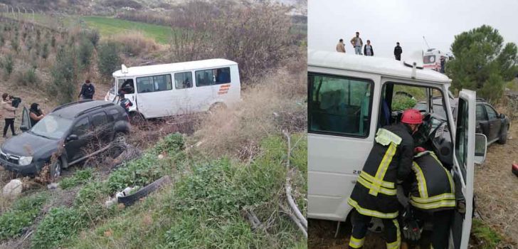 Denizli’nin Honaz ilçesinde otomobil ile minibüsün çarpışması neticesinde meydana gelen trafik kazasında 7 kişi yaralandı. Kaza, Honaz ilçesine bağlı Kocabaş Mahallesi’nde meydana geldi. Edinilen bilgiye göre; şehir merkezine ana yoldan seyir halinde olan minibüs, tali yoldan karşısına çıkan otomobil ile çarpıştı. Çarpışmanın etkisiyle araçlar, yoldan çıkarak tarlaya uçtu. Diğer sürücülerin ihbarı üzerine bölgeye çok sayıda sağlık ve itfaiye ekibi sevk edildi. Olay yerine giden sağlık ekibi yaralılara ilk müdahalede bulunurken, Honaz itfaiye ekipleri ise araç içerisinde sıkışan yaralıları kurtarmak için çalışma başlattı. Ekiplerin yoğun çalışmasının ardından 7 yaralı ambulans ile en yakın hastaneye kaldırıldı. Maddi hasarın oluştuğu kaza ile ilgili soruşturma başlatıldı.