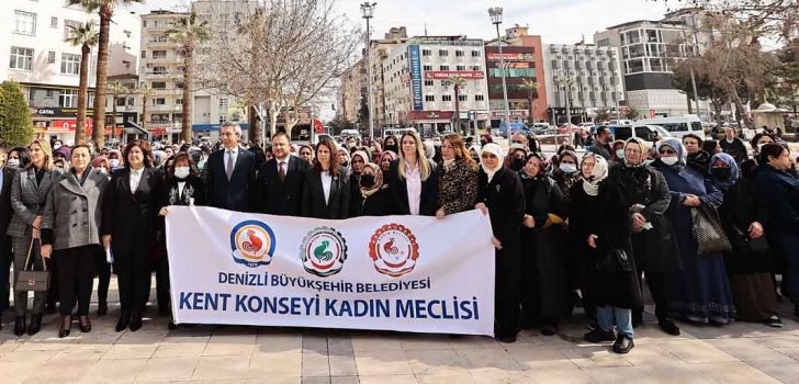 Denizlili kadınlar 8 Mart Dünya Kadınlar Günü’nde Büyükşehir Belediyesi Kent Konseyi Kadın Meclisi’nin düzenlediği etkinlikte bir araya gelerek, Atatürk Anıtı’na çelenk bıraktı. Denizli Büyükşehir Belediyesi Kent Konseyi Kadın Meclisi, 8 Mart Dünya Kadınlar Günü etkinlikleri kapsamında 15 Temmuz Delikliçınar Şehitler Meydanı’nda bir araya geldi. Çelenk sunma törenine Denizli Büyükşehir Belediye Başkanvekili Ali Değirmenci, Kent Konseyi Kadın Meclisi Başkanı Bilsen Özen, Kadın Meclisi yürütme kurulu üyeleri, siyasi parti temsilcileri, sivil toplum kuruluşu temsilcileri ve çok sayıda kadın katıldı. Denizli Büyükşehir Belediyesi Kent Konseyi Kadın Meclisi Başkanı Bilsen Özen’in Atatürk Anıtı’na çelenk bırakmasıyla başlayan tören saygı duruşu ve İstiklal Marşı’nın okunması ile devam etti.