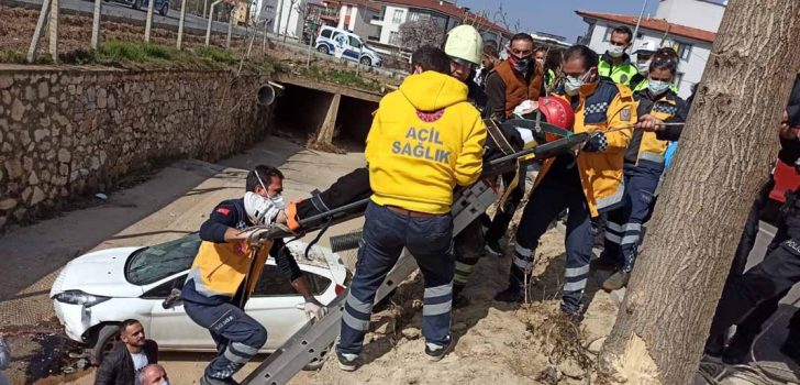 OTOMOBİL SU KANALINA DÜŞTÜ: 3 YARALI